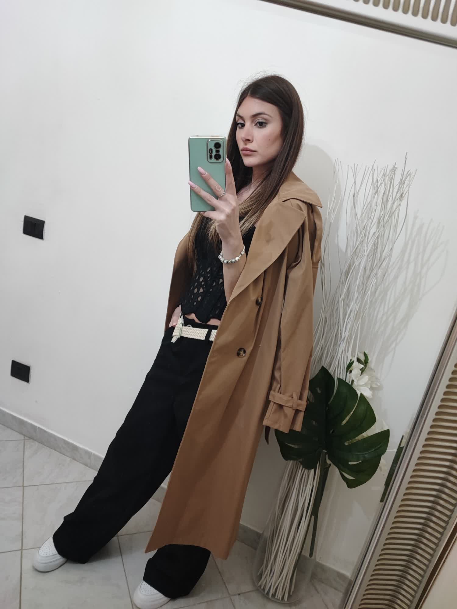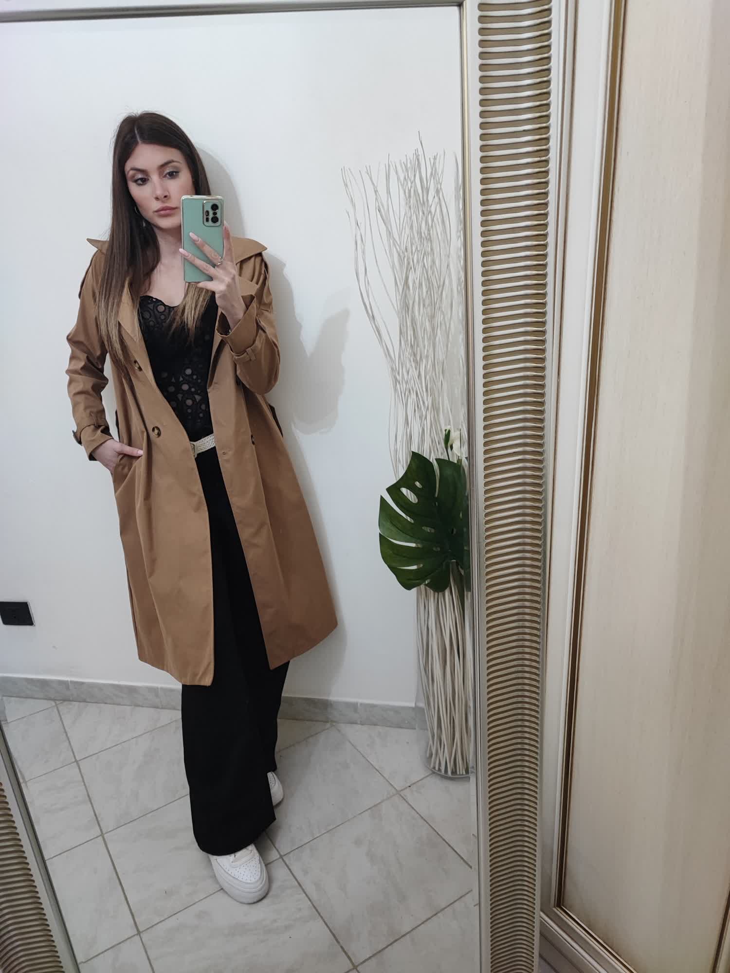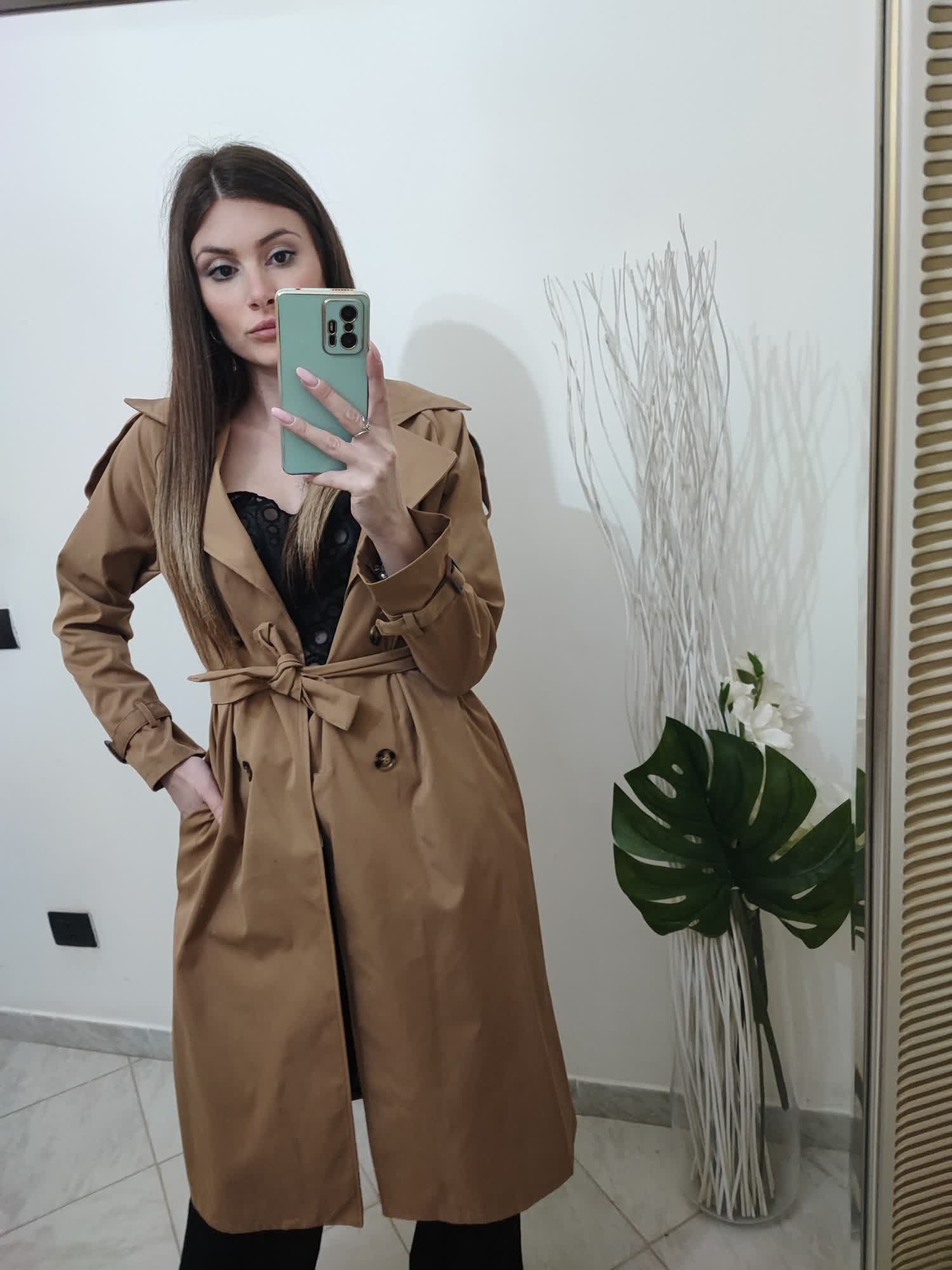 trench con chiusura con bottoni e cintura